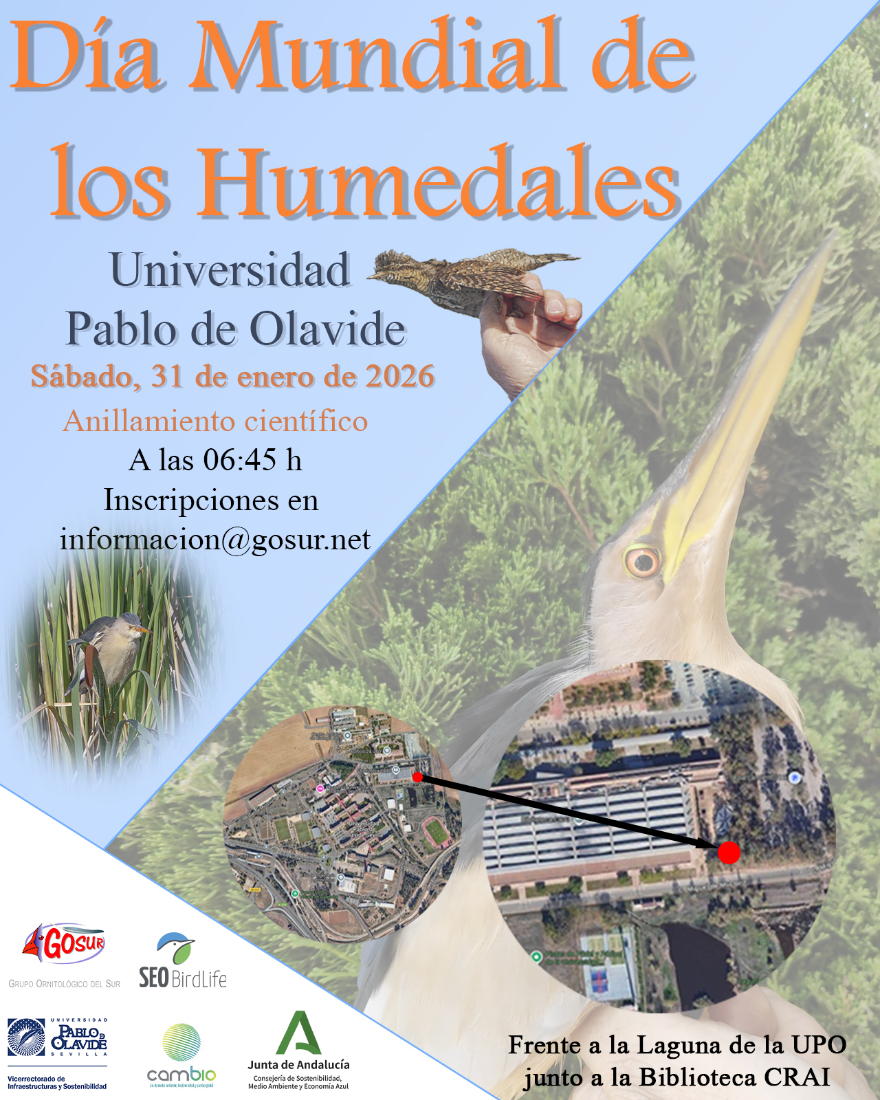 No hay mejor forma de celebrar el Día Mundial de los Humedales que viendo de cerca la belleza de las aves que los habitan. El próximo 31 de enero, en GOSUR nos vamos a la Laguna de la UPO para una jornada de anillamiento científico.