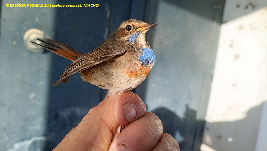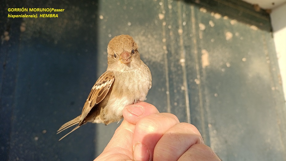Capturamos un total de 102 individuos de 11 especies diferentes, de los cuales 24 fueron escribanos palustres; estos nos alegraron el día. También lo hizo la recuperación de un ruiseñor pechiazul anillado en París. Las especies más abundantes en capturas fueron los tejedores, con un total de 30 individuos.