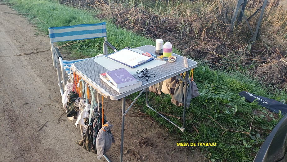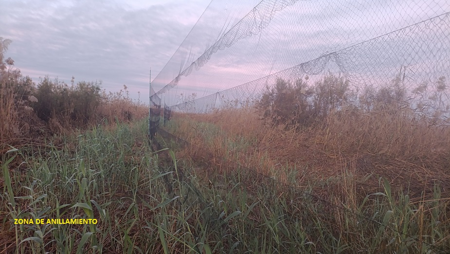 Comencé a montar las redes sobre las 7:00 a.m. en la zona denominada “Curva del convento” en el Paraje Natural del Brazo del Este. Coloqué cinco redes, aunque la idea era de montar ocho; menos mal que no lo hice, sino todavía estaría allí. El día fue típicamente otoñal, con una temperatura propia de esta época del año, aunque, al final de la jornada empezó a estropearse, levantándose viento y cayendo algunas gotas.