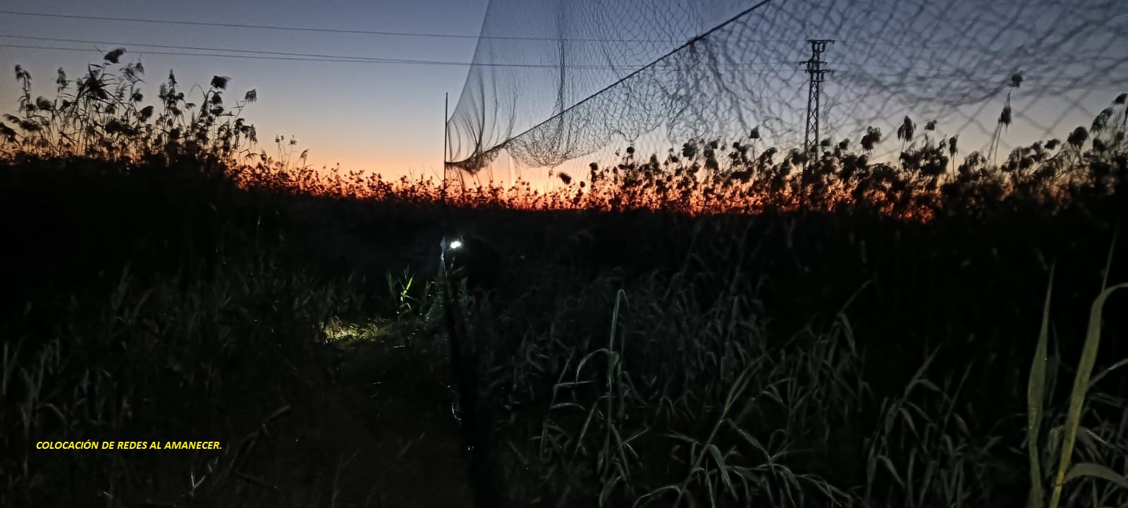 Comenzamos a montar las redes sobre las 7:00 a.m. en la zona denominada “curva del convento”, en el Paraje Natural del Brazo del Este. Colocamos seis redes. El día fue típicamente otoñal, con una temperatura propia de esta época del año. Llegando al final de la jornada, empezó a estropearse, levantándose viento, lo que produjo una baja tasa de capturas.