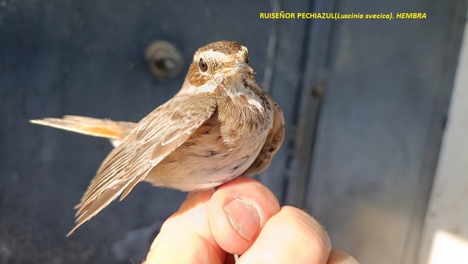 Capturamos un total de 102 individuos de 11 especies diferentes, de los cuales 24 fueron escribanos palustres; estos nos alegraron el día. También lo hizo la recuperación de un ruiseñor pechiazul anillado en París. Las especies más abundantes en capturas fueron los tejedores, con un total de 30 individuos.